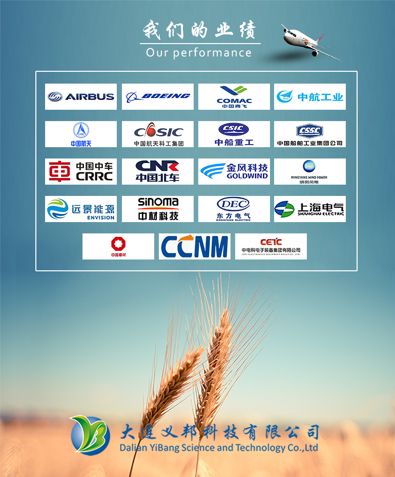 我們與中國商飛集團及中航工業(yè)旗下所有大型主機廠、部分設(shè)計所和輔機廠、國內(nèi)知名風(fēng)電廠商、軌道車與新能源電池企業(yè)形成了穩(wěn)定的業(yè)務(wù)合作,成功參與了中航工業(yè)直升機公司研發(fā)的AC系列直升機的防雷設(shè)計,C919的精密層撕墊片供應(yīng),在金風(fēng)科技和明陽智能的眾多風(fēng)電機葉片中成功應(yīng)用了DEXMET防雷金屬網(wǎng),中國哈爾濱飛機制造公司的Y-12系列輕型多用途飛機上應(yīng)用了我們代理的先進航空電子設(shè)備,為傳播國內(nèi)外先進的航空航天新材料資訊,大連義邦已成功舉辦了數(shù)百場技術(shù)交流會,參加數(shù)十場國內(nèi)外知名行業(yè)展會,未來我們還將砥礪前行,致力于高精尖材料與技術(shù)的引入與服務(wù),創(chuàng)立品牌貢獻社會。