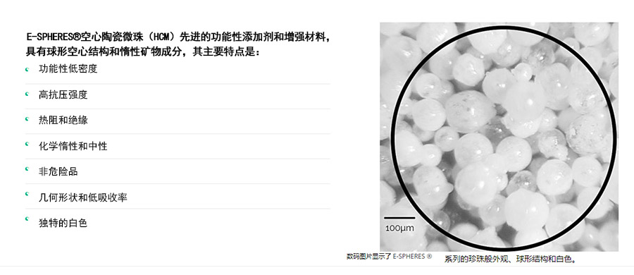 E-SPHERES是一家澳大利亞公司,專注于生產及制造空心陶瓷微珠。公司自1997年以來一直為全球市場提供優質產品,是該領域全球先行者。E-SPHERES是一種先進的陶瓷材料,可提升工程材料的性能及減輕材料重量,其球狀性可重塑世界。空心陶瓷微珠(HCM)又是一種強大的功能性添加劑,每個粒子幾乎呈完美的球形,有助于提高配方和工程材料的關鍵性能。