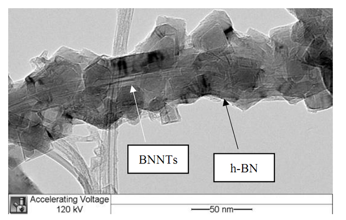 值得重點介紹的是大連義邦的氮化硼納米管(Boron Nitride NanobBarb,簡稱BNNB)。這種材料是六方氮化硼結晶體成核于納米管外表面的氮化硼納米管。氮化硼納米管作為基材的增強體,而不規則的六方氮化硼結晶體則增強了納米管與基材之間的交聯。