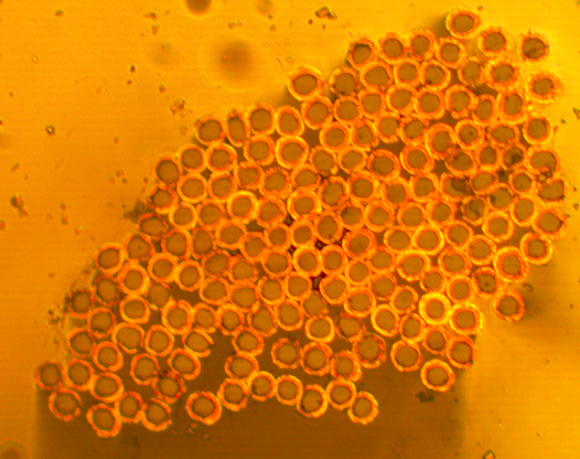 電鏡掃描顯示:單股PBO纖維內的每一根單絲,都被完整、均勻的 金屬涂層(圓環狀)所緊密包覆。這種深入纖維級別的鍍覆,確保了金屬結合度高達80%以上。